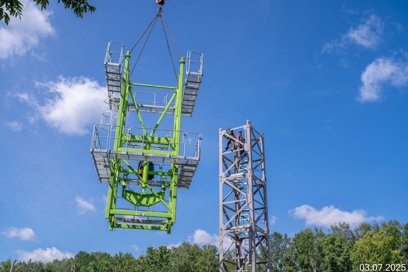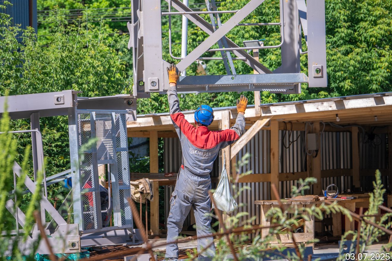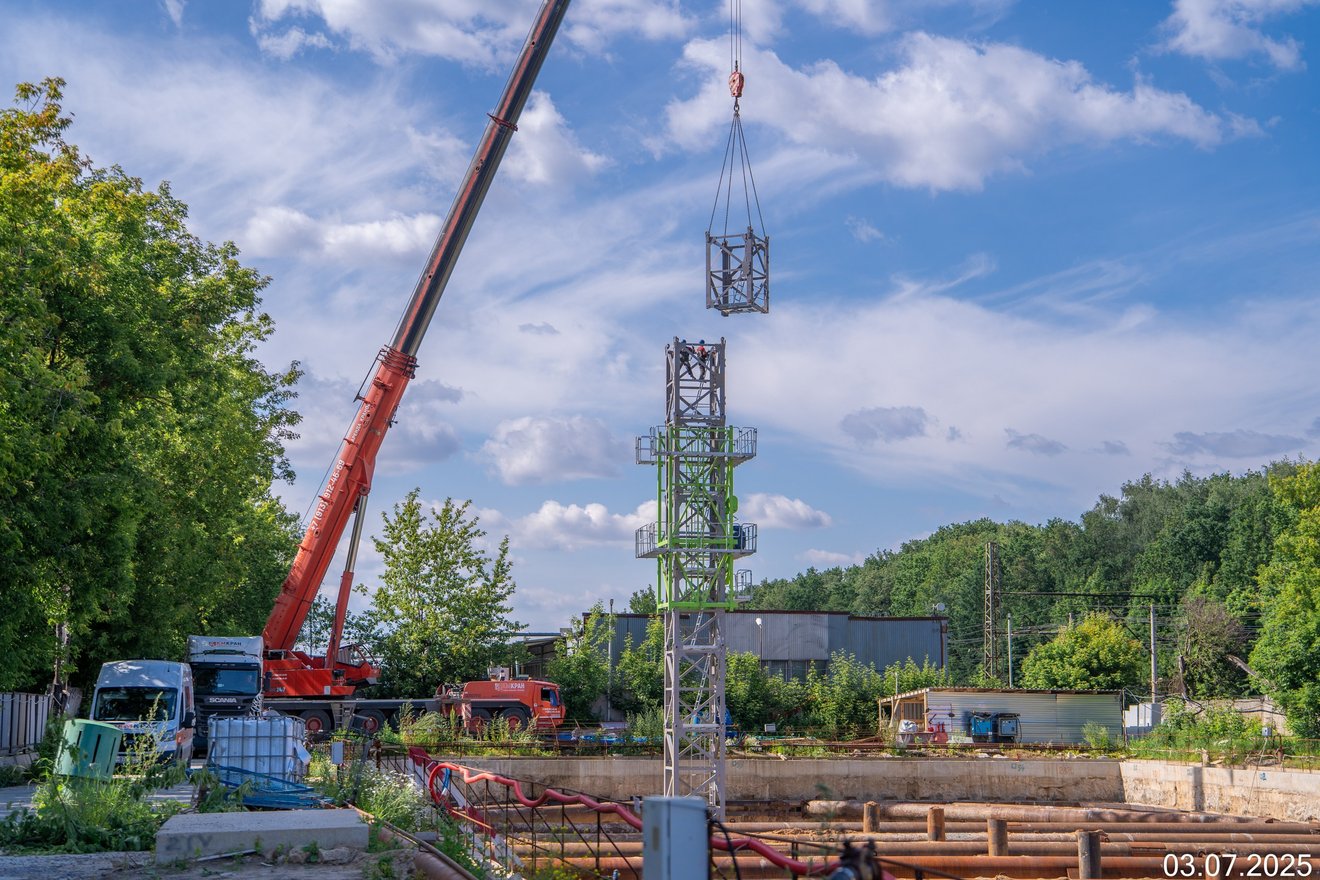 3 июля 2025 года на строительной площадке многофункционального комплекса Диус установлен первый башенный кран. Это важный этап, который позволит ускорить работы и перейти к возведению наземной части здания.